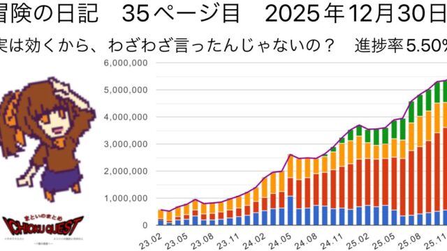 イチオククエスト 冒険の日記 35ページ目 2025年12月30日 実は効くから、わざわざ言ったんじゃないの? 進捗率5.50% 2026年1月19日 matoimatome まといのまとめ イチオククエスト メリハリの倹約と市井の人 〜1億の資産へ~